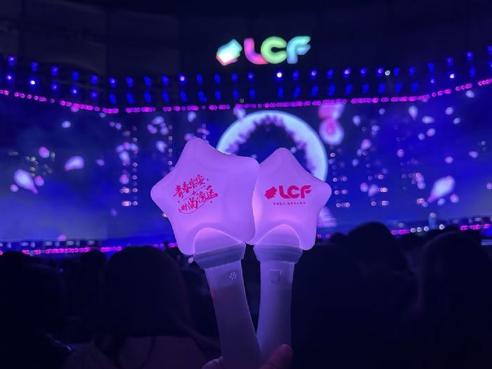 現(xiàn)場(chǎng)24000多根場(chǎng)控?zé)晒獍,通過群控、區(qū)控、點(diǎn)控,呈現(xiàn)出浪漫的熒光海,臺(tái)下粉絲的情緒傳遞給臺(tái)上喜歡的偶像,一起互動(dòng)。