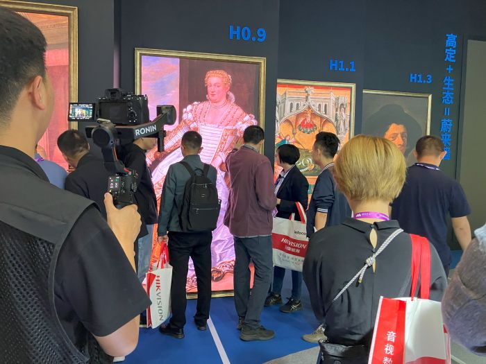 展位另一大耀眼產(chǎn)品畫框屏,憑借創(chuàng)意的展示,驚艷聚焦。畫框屏由全系列列陣組成,共四個(gè)屏幕,按最小視距不同,呈階梯狀展示。站在設(shè)定好的最小視距以外,觀眾可以感受到所有系列的顯示效果都是同樣優(yōu)秀。