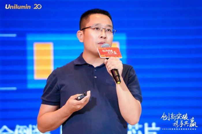 洲明技術(shù)平臺部總監(jiān)孫天鵬具體介紹了星河系列 Utile MIP、星鉆AM系列軟屏、UMiniD虛擬像素、UPM機動快開式綜合顯示平臺等等尖端技術(shù)成果;