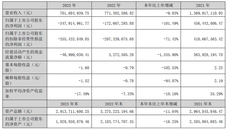富滿微4月24日發(fā)布2023年年度報告。報告期內(nèi),公司實現(xiàn)營業(yè)收入7.02億元,同比下滑9.03%;歸屬于上市公司股東的凈利潤-3.48億元,較上年同期虧損增加。報告期內(nèi)經(jīng)營活動產(chǎn)生的現(xiàn)金流量凈額為-46,990,030.41元,歸屬于上市公司股東的凈資產(chǎn)1,828,858,879.46元。