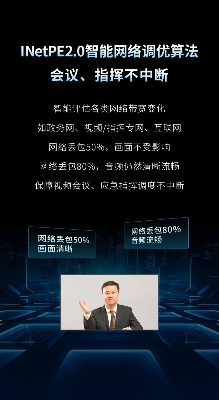 智能評估各類網(wǎng)絡(luò)帶寬變化如政務(wù)網(wǎng)、視頻/指揮專網(wǎng)、互聯(lián)雙雙絡(luò)丟包50%,畫面不受影響網(wǎng)絡(luò)丟包80%,音頻仍然清晰流暢保障視頻會議、應(yīng)急指揮調(diào)度不中斷