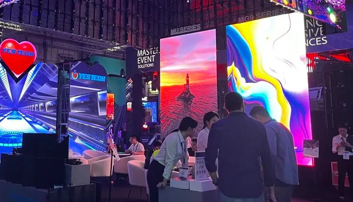 在新亞勝吊裝展示區(qū),人頭攢動,絢爛的粒子畫面,呈現(xiàn)出震撼視覺顯示效果,獲得極高關(guān)注度。