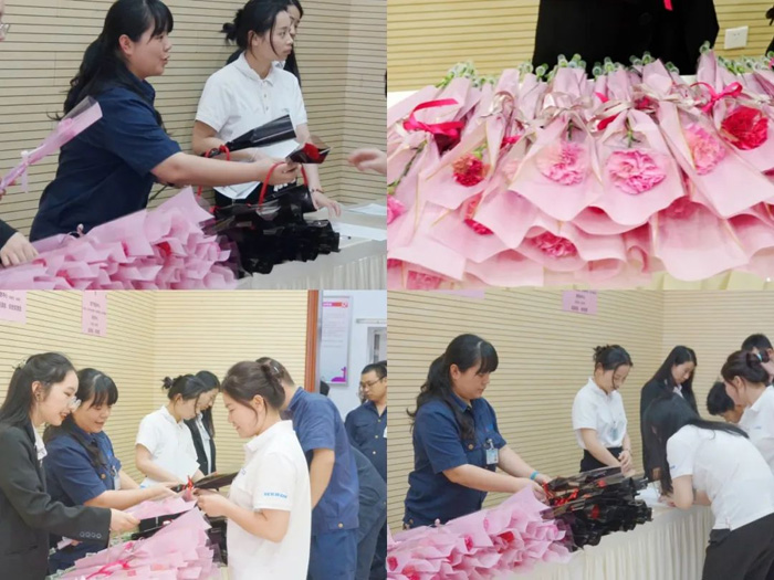 (圖)活動現場,新亞勝工會組織 為全體女性員工送上鮮花