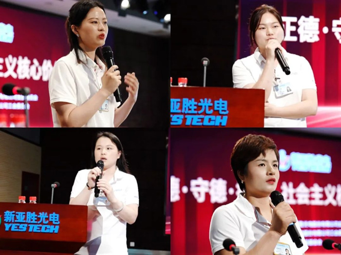 在劉勇為教授的講座結束之后,進入第一期的員工分享環(huán)節(jié)。四位新亞勝銷售人員代表作為新時代女性,站在為人女、為人妻、為人母的不同角色中,結合自身的經歷,講述了她們在生活與工作中對于社會主義核心價值觀、企業(yè)“德”文化的心得體會,她們言真意切,話語誠摯,贏得了在場人員熱烈的掌聲。