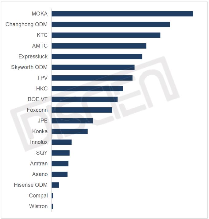 其他代工廠(chǎng)中Konka(康佳)出貨超30萬(wàn),同比提升近兩成,Innolux(群創(chuàng))出貨近20萬(wàn),因去年基數(shù)較低本月同比提升超五成; SQY(啟悅)出貨近20萬(wàn),同比持平。