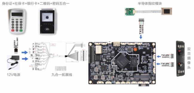 ②、其他外設(shè)例如身份證模塊或二維碼模塊的連接也需要注意供電電壓和線序,PCBA背面都有絲印,核對之后再進(jìn)行連接。