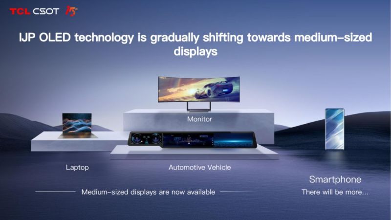 以領先技術與應用優(yōu)勢為依托,TCL華星印刷OLED技術推廣重心主要在中尺寸顯示領域,如商用、電競顯示器,筆記本顯示屏,以及醫(yī)療、車載、工控等差異化產(chǎn)品,未來可擴展到平板,手機等領域。