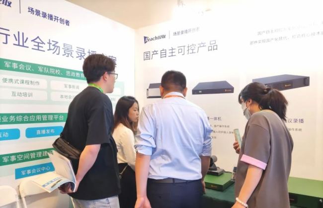 軍博會已成為我國軍隊裝備智能化建設以及技術創(chuàng)新、技術交流、成果展示、采購應用的重要溝通平臺。本次展會,銳取攜推門聽課制作方案、便攜式課程制作方案、視頻會議錄播、錄播一體機和視頻業(yè)務綜合應用管理平臺等國產(chǎn)化自主可控產(chǎn)品 ,隆重亮相展會現(xiàn)場,為行業(yè)人士展示銳取國產(chǎn)化技術領域的新成果,共同探索軍事智能領域未來視訊的發(fā)展趨勢和方向。