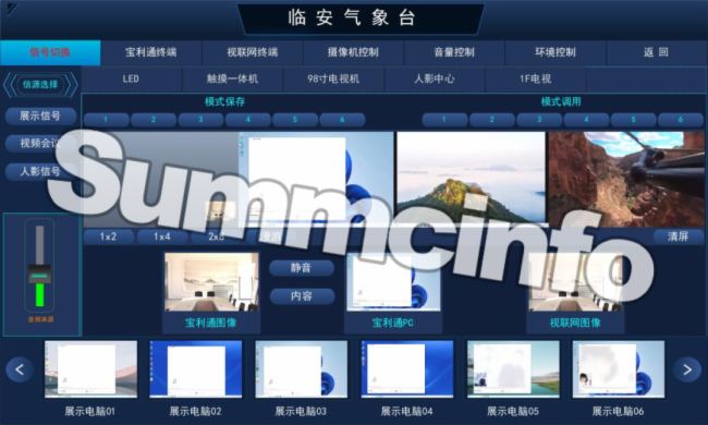 氣象臺(tái)采用了小間距LED屏,均配置了Summcinfo分布式輸出拼接節(jié)點(diǎn),可對(duì)大屏進(jìn)行任意拼接、疊加、漫游等顯示操作;