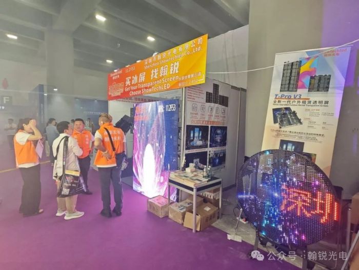 位于11.2館F53和B52展位上,翰銳光電的戶外透明冰屏T-pro V3系列和T-pro V2系列成為了本次展會(huì)的焦點(diǎn)之一。