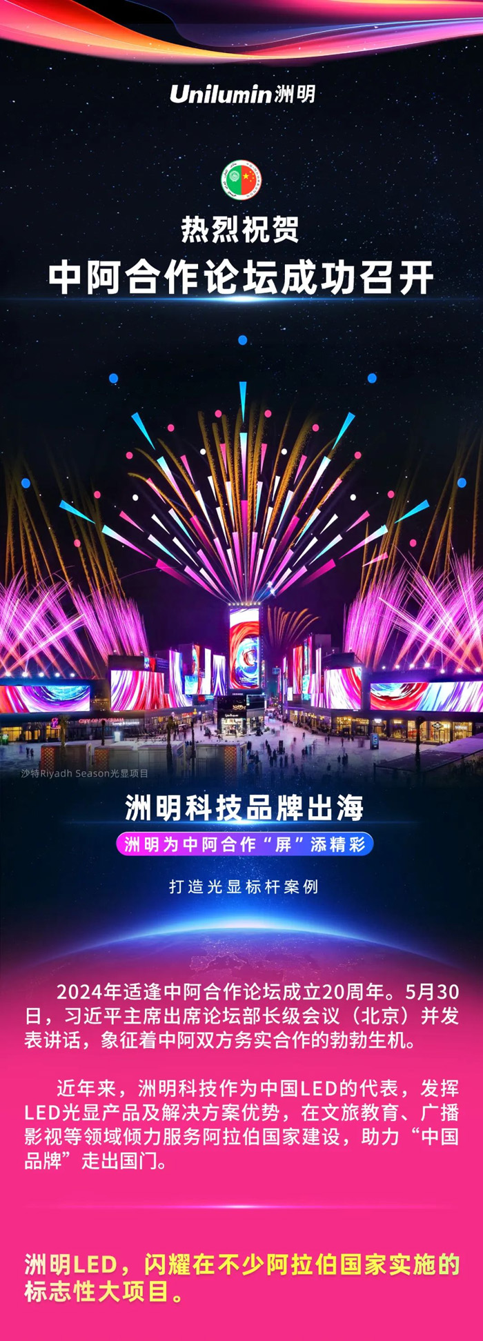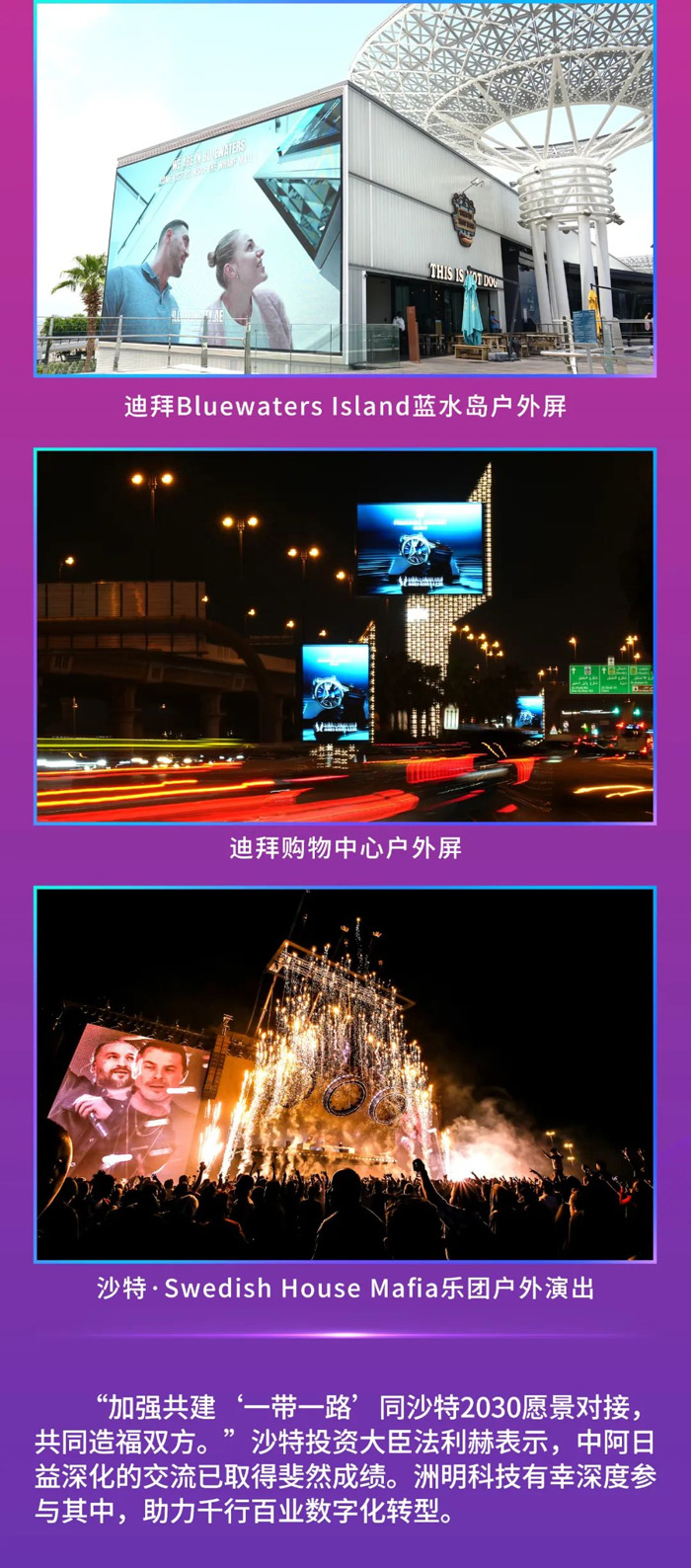 近年來,洲明科技作為中國LED的代表,發(fā)揮LED光顯產(chǎn)品及解決方案優(yōu)勢,在文旅教育、廣播影視等領(lǐng)域傾力服務(wù)阿拉伯國家建設(shè),助力“中國品牌”走出國門。