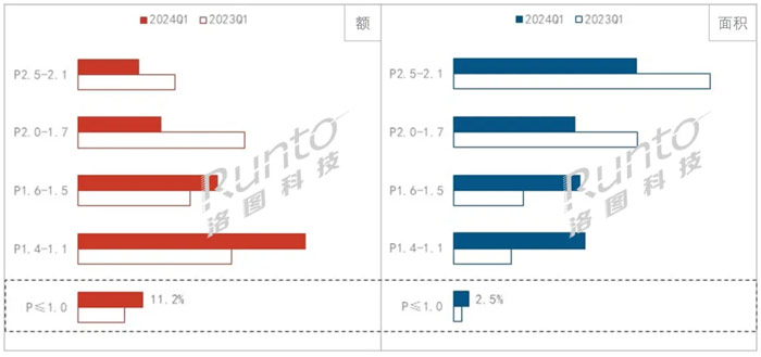 2024年Q1 中國(guó)大陸小間距LED顯示屏市場(chǎng)間距段結(jié)構(gòu)