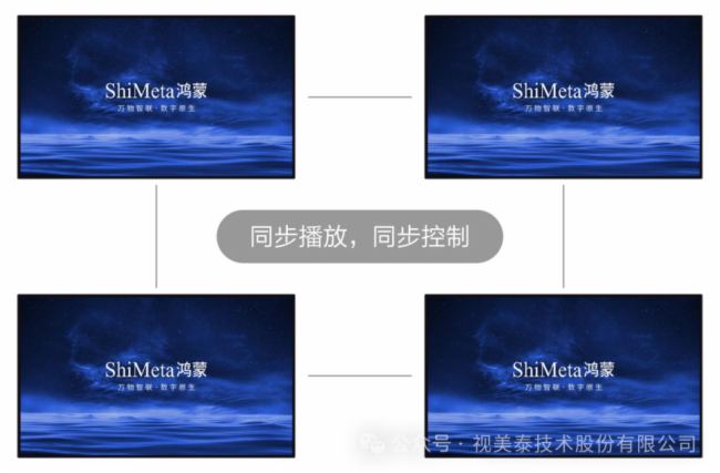 在ShiMeta鴻蒙數(shù)字標(biāo)牌系統(tǒng)的基礎(chǔ)上,通過信號處理器,實(shí)現(xiàn)多個顯示屏幕之間的內(nèi)容同步顯示,以提升信息傳達(dá)的效率和視覺體驗(yàn)。