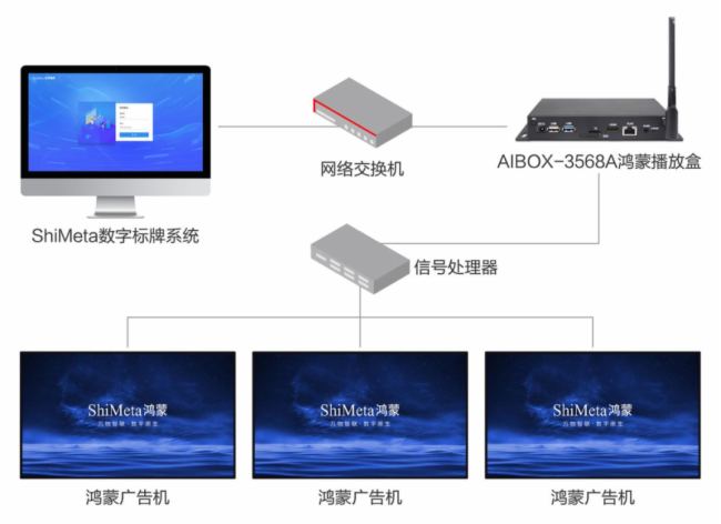 鴻蒙多屏同步解決方案由ShiMeta數(shù)字標(biāo)牌系統(tǒng)、鴻蒙播放盒、鴻蒙廣告機(jī)及信號處理器等軟硬件組成,提供穩(wěn)定可靠的多屏同步播放體驗(yàn)