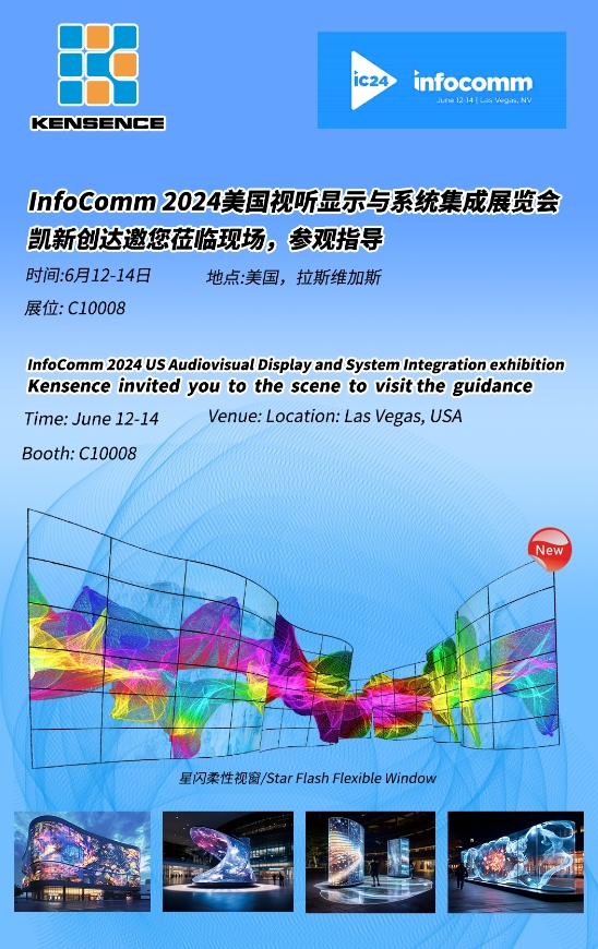 6月12日-14日,2024美國視聽顯示與系統(tǒng)集成展覽會(InfoComm USA)將在拉斯維加斯會議中心隆重舉辦。凱新創(chuàng)達(dá)柔性透明屏-星閃柔性視窗將首次亮相國際舞臺,為客戶帶來創(chuàng)新視覺體驗(yàn)。