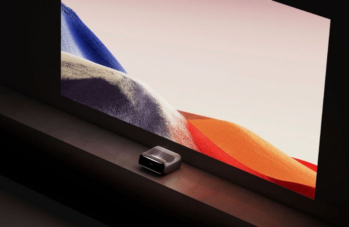 激光顯示的優(yōu)勢(shì)除了大尺寸之外,更具有舒適觀看距離小、視覺(jué)健康度高的特點(diǎn)。仿生式反射成像,一般100英寸只需要2.8米以上的觀看距離。同時(shí),反射成像屏幕厚度極小,加上框架也可以薄到只有一兩厘米,不占據(jù)額外室內(nèi)“凈寬”空間(對(duì)比而言大尺寸100英寸+液晶電視的支架和厚度需要40厘米的空間容納),進(jìn)一步凸顯激光電視對(duì)小空間大畫(huà)面健康視覺(jué)的友好性。