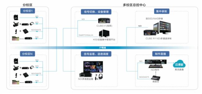 在現(xiàn)場,我們展示了CUBE X1矩陣服務器對于多路信號強大的處理、分發(fā)及無縫切換能力。在多業(yè)務場景的實際工作流中,傳統(tǒng)的解決方式是通過大量的線纜、在配以相對應的硬件設備完成復雜的信號處理及分發(fā),F(xiàn)在,我們通過CUBE X1矩陣系統(tǒng)完成了現(xiàn)場所有攝像源的接入,而這一切只需要通過一根網(wǎng)線即可完成。
