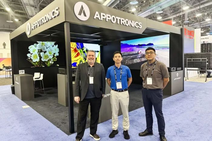 光峰科技專顯事業(yè)部總經(jīng)理 張峰、專顯美國高級銷售經(jīng)理 Peter以及北美合作伙伴 Tom Schwartz 等,出席了此次展會,在展會現(xiàn)場向全球客戶詳細(xì)介紹了參展產(chǎn)品的特性和技術(shù)優(yōu)勢。