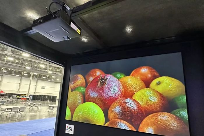 在W3845展位,光峰專顯產(chǎn)品吸引了眾多行業(yè)專家和參展觀眾的目光。特別是備受矚目的工程投影新品S Pro,通過現(xiàn)場投射150吋畫面,S Pro全面展示了其卓越的色彩還原能力、對比度和分辨率等性能,讓參展觀眾能夠直觀地感受到其優(yōu)異的畫質(zhì)及性能表現(xiàn)。