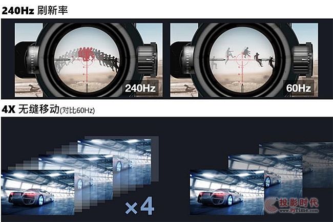 對于PC游戲玩家,優(yōu)派PJB716K的240Hz的超高速刷新率,每秒可顯示240幀畫面,消除游戲畫面撕裂以及游戲畫面的滯后感,提供令人難以置信的大屏幕流暢游戲體驗與視效感受;同時,PJB716K 搭載4.2ms極速輸入延遲技術(shù),讓視頻信號可快速傳輸?shù)酵队爱嬅孢M行顯示,因此投影儀具有最快的響應時間,非常適合激烈的動作游戲,在想攻擊的時候毫不拖延地發(fā)動攻擊,游戲競爭優(yōu)勢顯而易見,體驗更上一層樓。