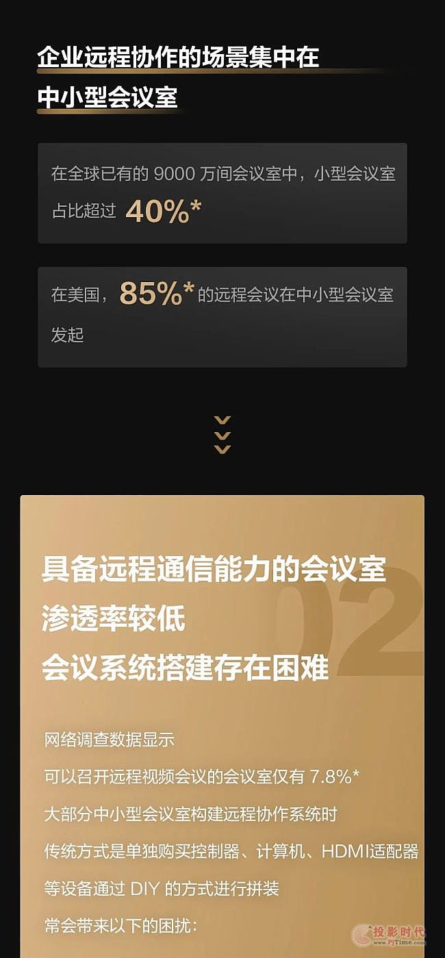 搭建成本高:據統計,現代企業(yè)在小型會議空間上平均花費高達 5.000 美元*成為遠程會議室落地的重要障礙。