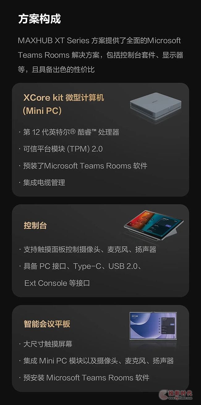MAXHUB XT Series 方案提供了全面的MicrosoftTeams Rooms 解決方案,包括控制臺套件、顯示器等,且具備出色的性價比。