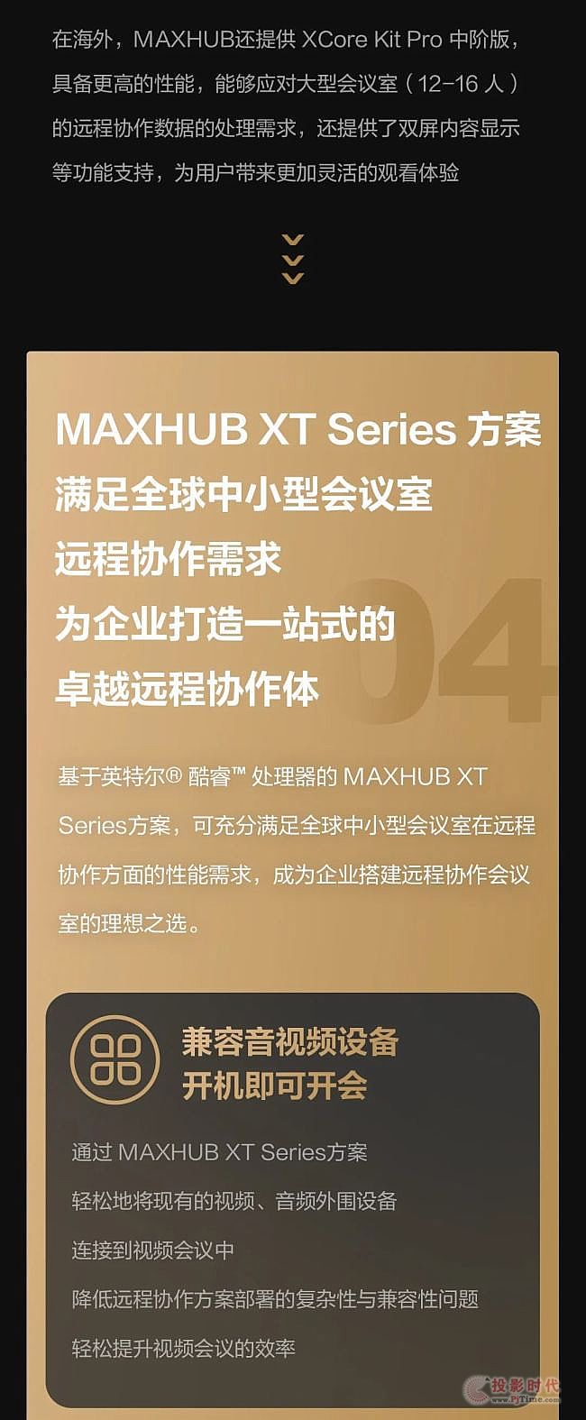 基于英特爾® 酷睿™ 處理器的 MAXHUB XT Series方案,可充分滿足全球中小型會議室在遠程協作方面的性能需求,成為企業(yè)搭建遠程協作會議室的理想之選。