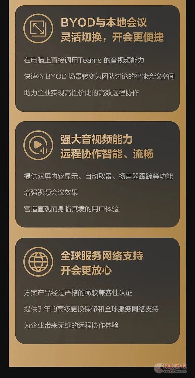 方案產品經過嚴格的微軟兼容性認證,提供3 年的高級更換保修和全球服務網絡支持,為企業(yè)帶來無縫的遠程協作體驗。