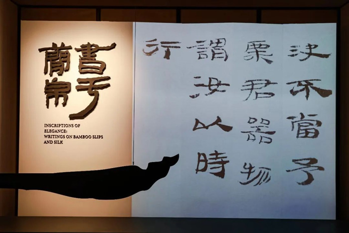 “書(shū)于簡(jiǎn)帛”展廳應(yīng)用了13臺(tái)巴可投影機(jī),用影像加強(qiáng)甘肅簡(jiǎn)牘的書(shū)法美學(xué)情境。