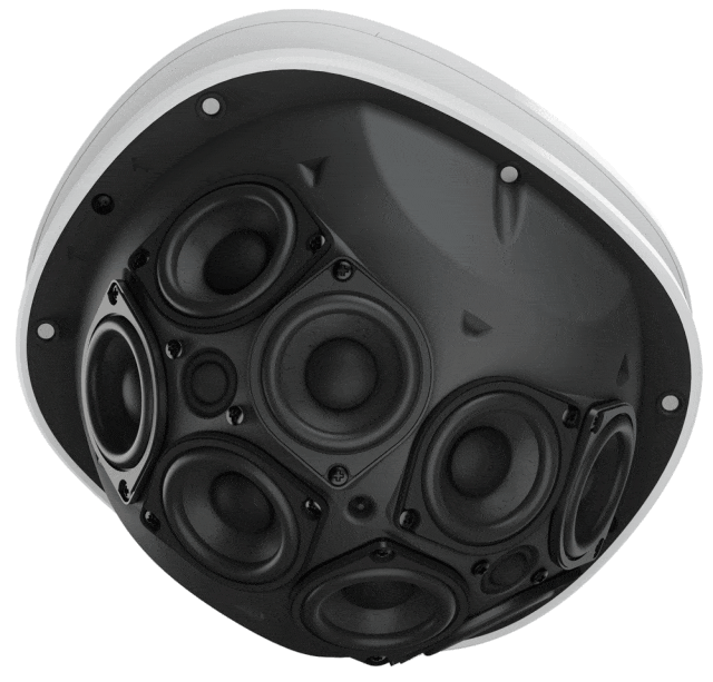 區(qū)別于傳統(tǒng)擴聲方式,世邦智能均衡音箱采用全新蜂巢腔體設計,內嵌8個全頻單元呈線陣曲面分布,排列緊湊,外觀形似蜂巢。曲面揚聲器陣列能同時滿足在水平、垂直兩個方向上良好的聲音指向性效果;
