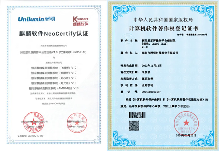 2月,洲明科技的顯示屏操作平臺(tái)信創(chuàng)版正式通過(guò)麒麟軟件NeoCertify認(rèn)證,產(chǎn)品在兼容性、安全性等方面得到權(quán)威認(rèn)可并獲國(guó)產(chǎn)化軟件產(chǎn)品資質(zhì),用戶將可在完全國(guó)產(chǎn)化的條件下,深度應(yīng)用洲明硬件+軟件+交互+內(nèi)容的一體化解決方案。