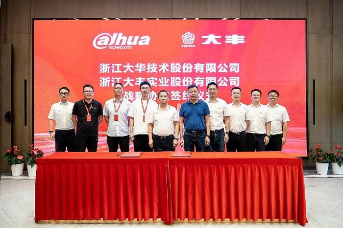 7月11日,大華股份與浙江大豐實(shí)業(yè)股份有限公司(以下簡(jiǎn)稱“大豐實(shí)業(yè)”)簽署戰(zhàn)略合作協(xié)議。大豐實(shí)業(yè)董事長(zhǎng)、總裁豐華,大華股份視訊事業(yè)部總裁陳建峰代表雙方簽署合作協(xié)議。
