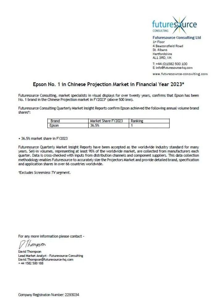 Futuresource宣投影老牌愛普生第一,為了這個(gè)名頭是煞費(fèi)苦心!