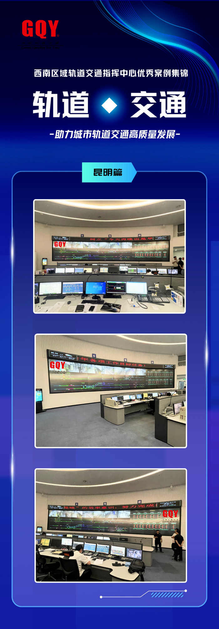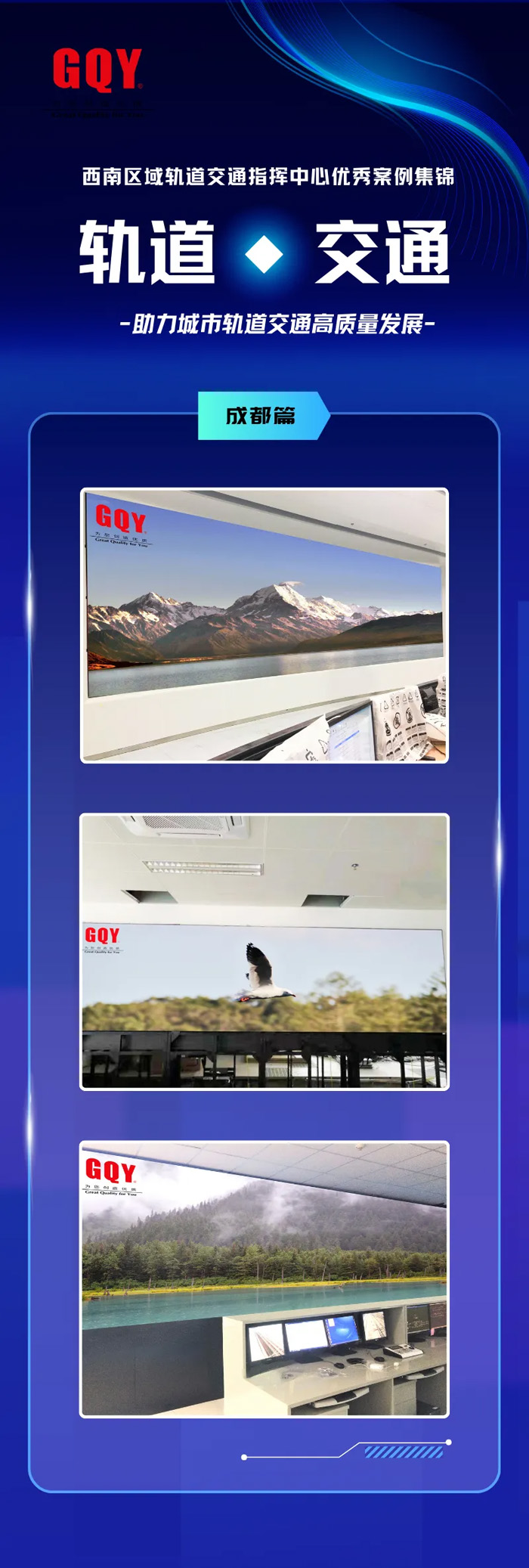 作為信息系統(tǒng)集成解決方案的提供商,GQY視訊一直深入研究軌道交通行業(yè)對屏顯產(chǎn)品及視訊系統(tǒng)集成解決方案的需求,優(yōu)秀項目案例遍布祖國各地。當您乘坐軌道交通在城市中通行時,GQY視訊正在為您的出行安全保駕護航。近年來,擁有豐富旅游資源的西南地區(qū)成為人們外出旅游的熱門選擇,比如四川、云南、廣西、貴州等旅游城市,在經(jīng)濟快速發(fā)展的時代背景下,耗時短、效率高的“特種兵式旅游”也逐漸興起,這一新興旅游形式在實際生活中離不開便捷換乘、快速高效的城市軌道交通。