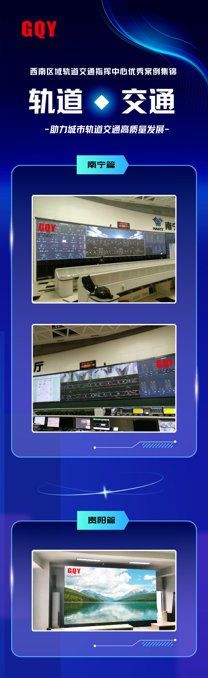 西南地區(qū)位于生態(tài)環(huán)境豐富、地形多樣的風景地帶,孕育出許多廣受年輕人喜歡的網(wǎng)紅旅游城市,為輔助西南地區(qū)將獨特優(yōu)勢轉(zhuǎn)化為發(fā)展動力,GQY視訊攜手西南旅游城市,如重慶、成都、昆明、南寧和貴陽,共同打造了多個城市軌道交通運營指揮中心工程案例。