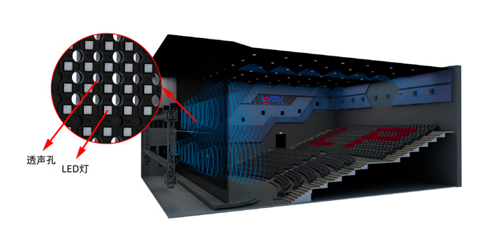 該產(chǎn)品徹底解決了LED屏不透聲對影院聲像定位的難題,徹底根除了LED屏聲反射對影院環(huán)境建聲的困擾,徹底而全面兼容了傳統(tǒng)影院擴聲系統(tǒng)。