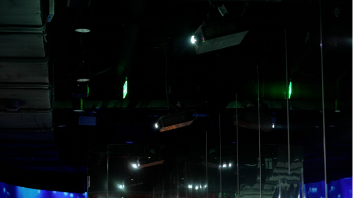 最后的“光之通道“,是整個展覽中使用投影機數(shù)量最多的區(qū)域。電影中一幕又一幕的經(jīng)典場景,在這個沉浸式空間中再現(xiàn)。最終也以電影中結尾的一扇扇選擇的門作為結束,去選擇自己的一扇門,活出屬于自己的人生。在這個空間中,使用了13臺松下系統(tǒng)工程投影機,確保效果的同時,也將對空間內的干擾降到最小。非常低的噪音水平,使得觀眾基本聽不到投影機的運行噪音,更加專注于精美的展覽畫面。多臺投影機融合后,畫面色彩一致,呈現(xiàn)無縫拼接的大畫面投影。