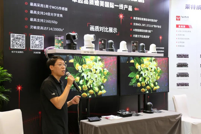 在展會(huì)現(xiàn)場(chǎng),HCTEK華創(chuàng)4K一體化攝像機(jī)與國(guó)際知名品牌的產(chǎn)品進(jìn)行了同屏競(jìng)技,充分展現(xiàn)其卓越的畫質(zhì)表現(xiàn)。無論是在會(huì)議、教育培訓(xùn),還是在體育賽事、電視節(jié)目的錄制中,華創(chuàng)攝像機(jī)均展現(xiàn)出專業(yè)級(jí)的水準(zhǔn),其品質(zhì)與國(guó)際一線產(chǎn)品相媲美。