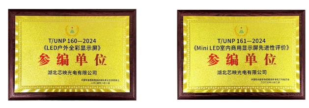 近日,由芯映光電參編起草的《LED戶外全彩顯示屏》、《MiniLED室內(nèi)商用顯示屏先進(jìn)性評(píng)價(jià)》兩項(xiàng)團(tuán)體標(biāo)準(zhǔn)正式發(fā)布,將于2024年11月02日正式實(shí)施。