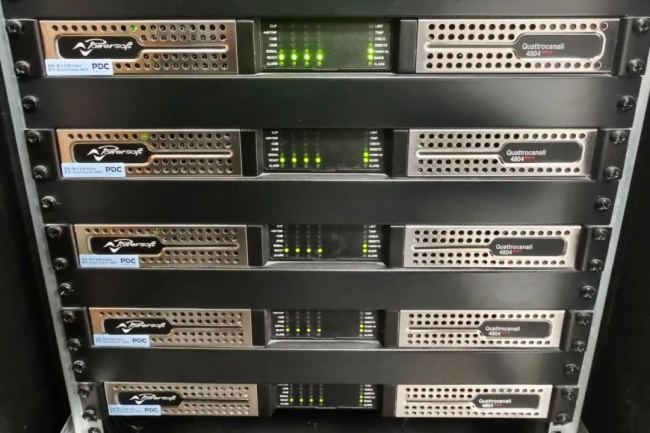 在體育場(chǎng)四個(gè)拐角高層位置設(shè)置了四間功放機(jī)房,全部采用Powersoft Quattrocanali 系列數(shù)字功率放大器驅(qū)動(dòng)附近區(qū)域的主擴(kuò)揚(yáng)聲器系統(tǒng),有效縮短揚(yáng)聲器線纜傳輸距離,降低信號(hào)衰減。Powersoft數(shù)字功率放大器內(nèi)置DPS功率因數(shù),并支持Dante網(wǎng)絡(luò)音頻傳輸,通過其內(nèi)部的信號(hào)源優(yōu)先級(jí)選擇和自動(dòng)切換功能,對(duì)主備擴(kuò)聲系統(tǒng)的信號(hào)進(jìn)行甄別和選擇,當(dāng)主系統(tǒng)信號(hào)斷掉時(shí),備份信號(hào)無縫切換,保證擴(kuò)聲系統(tǒng)使用過程中的安全穩(wěn)定性。同時(shí),利用Powersoft功率放大器搭載的功率因數(shù)校正(PFC)和脈沖寬調(diào)制(PWM)技術(shù),可將絕大部分電能轉(zhuǎn)換為可用功率,有效降低擴(kuò)聲系統(tǒng)能耗,為體育場(chǎng)帶來更高的能效轉(zhuǎn)換率。