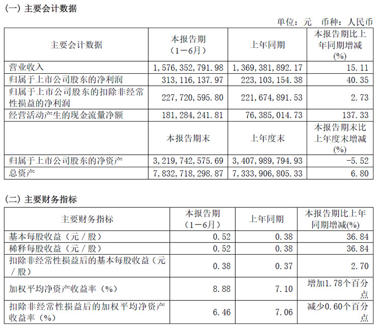 8月23日,彤程新材料集團(tuán)股份有限公司發(fā)布2024年半年度報(bào)告。2024年上半年,公司按照既定的發(fā)展戰(zhàn)略,穩(wěn)步向前,仍舊保持較快、較好地增長(zhǎng)趨勢(shì)。報(bào)告期內(nèi),公司實(shí)現(xiàn)營(yíng)業(yè)收入人民幣157,635.28萬(wàn)元,較上年同期增長(zhǎng)15.11%,實(shí)現(xiàn)歸屬于上市公司股東的凈利潤(rùn)人民幣31,311.61萬(wàn)元,較上年同期增長(zhǎng)40.35%。