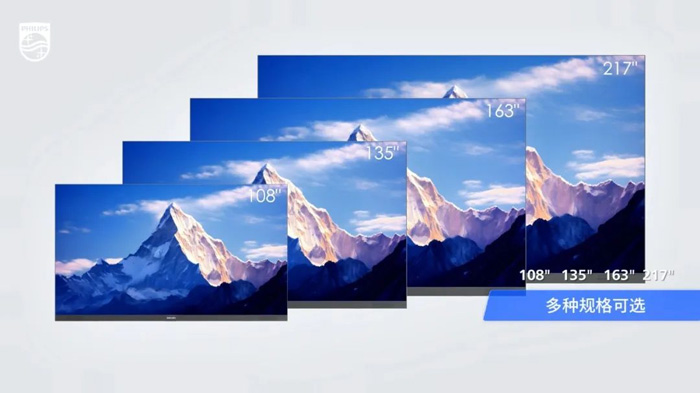 多元應用,行業(yè)新寵飛利浦LED一體機涵蓋豐富尺寸,108"/135"/163"/217"多種規(guī)格可選,可切實應用于大會議室、家庭影院、智慧展廳、培訓室等場景。