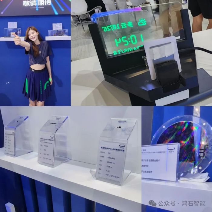 陳列區(qū),鴻石智能極光系列微顯示芯片、極光系列MicroLED光引擎悉數(shù)亮相。各大體驗(yàn)區(qū)和前沿MicroLED顯示技術(shù)落地產(chǎn)品的結(jié)合,為現(xiàn)場參展觀眾呈現(xiàn)了一場完美的視覺盛宴。