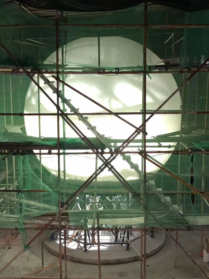 羿飛教育首次挑戰(zhàn)了如此巨大尺寸的內(nèi)投球幕。以往在球幕制作上的經(jīng)驗,無法在這個產(chǎn)品上復(fù)制。面對這一挑戰(zhàn),羿飛教育的工程師們經(jīng)過無數(shù)次的討論與試驗,最終制定出一套全新的加工方案,確保了球幕的精確制作。