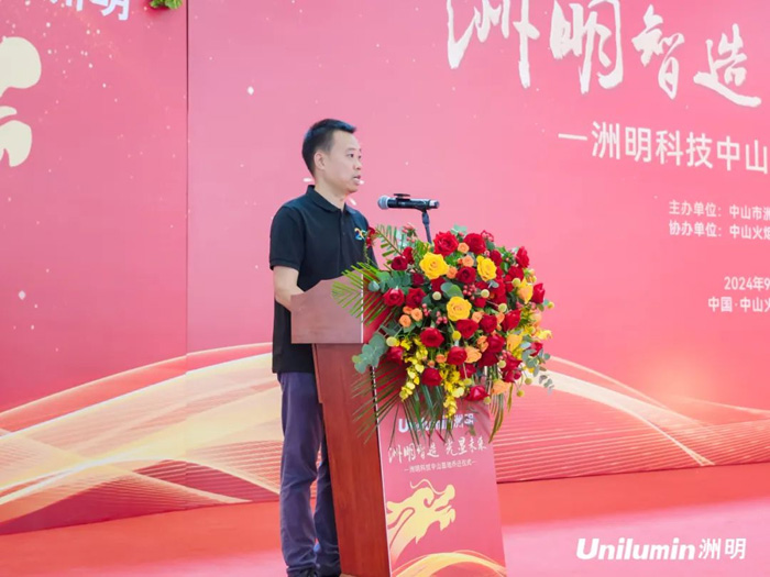 儀式上,林洺鋒董事長首先向中山市委市政府、火炬高新區(qū)黨工委管委會的鼎力支持與幫助,以及中機國際設計研究院、中建五局精益求精的設計與施工表達誠摯的感謝。他進一步表示,中山基地將大力提升數字化、智能化、自動化水平,通過“數字化制造”和“工業(yè)4.0”升級,引領行業(yè)智造升級,實現共享工廠模式在華南的落地。作為行業(yè)內唯一一家同時擁有LED顯示與照明雙產線的企業(yè),洲明將進一步加強“光顯”融合發(fā)展,為大眾營造更專業(yè)、沉浸的場景體驗。