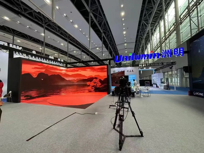 其中,洲明科技展出的虛擬拍攝三折屏和電影屏,酷炫的XR虛擬影棚吸引了眾多專業(yè)人士和觀眾的興趣,紛紛前來咨詢了解。