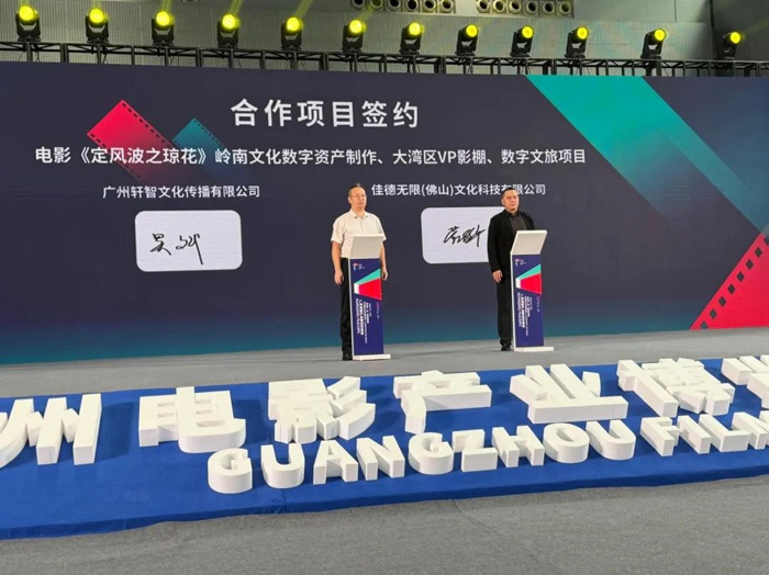 9月27日上午,在廣州電影產(chǎn)業(yè)博覽會同期活動——“影動廣州綻放世界”電影產(chǎn)業(yè)高質(zhì)量發(fā)展大會上,洲明科技旗下子公司廣州軒智文化傳播有限公司與佳德無限(佛山)文化科技有限公司圍繞電影《定風波之瓊花》進行嶺南文化數(shù)字資產(chǎn)制作、大灣區(qū)數(shù)字影棚、數(shù)字文旅項目簽約,以科技賦能電影生產(chǎn)。
