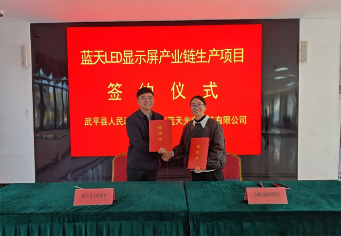 據(jù)“ 武平發(fā)布”消息,由福建省武平縣商務(wù)局引進(jìn)的藍(lán)天LED顯示屏產(chǎn)業(yè)鏈生產(chǎn)項(xiàng)目于1月2日舉行簽約儀式。該項(xiàng)目由泉州藍(lán)天光電科技有限公司負(fù)責(zé)建設(shè),擬投資5.1億元。