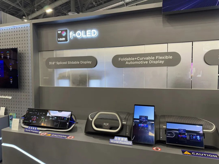 在柔性O(shè)LED領(lǐng)域,基于f-OLED技術(shù)品牌賦能,京東方發(fā)布了業(yè)界領(lǐng)先的31.6英寸拼接滑卷顯示屏,其能夠靈活地在31.6英寸至17.6英寸之間切換顯示狀態(tài),該產(chǎn)品獲評“CES 創(chuàng)新獎——2025年度車載娛樂杰出獎。另外,京東方還全球首發(fā)了集電動折疊與彎曲功能于一體的車載顯示屏,包括15.05英寸的電動折疊屏以及17英寸的中控曲面呼吸屏。曲面呼吸屏能夠在曲面和平面之間自由切換形態(tài),而副駕娛樂折疊屏則具備R3的彎折半徑,能夠依據(jù)不同使用場景靈活地展開與隱藏收納。