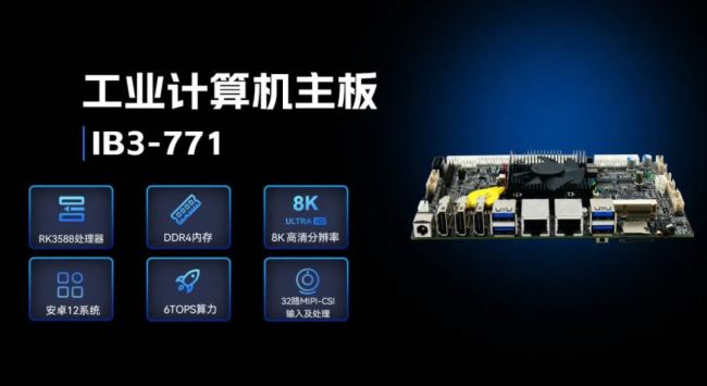 ARM主板IB3-771采用瑞芯微RK3588處理器,滿足各種人工智能場(chǎng)域?qū)I(yè)主板:高算力、低功耗、高擴(kuò)展性、高可靠性、高安全性等要求,IB3-771支持在寬溫、復(fù)雜電磁等惡劣環(huán)境下穩(wěn)定運(yùn)行,可廣泛應(yīng)用于機(jī)器人、邊緣計(jì)算、智能NVR、智能汽車、智慧大屏、AR/VR、智能自助終端等AIoT行業(yè)類應(yīng)用市場(chǎng)。